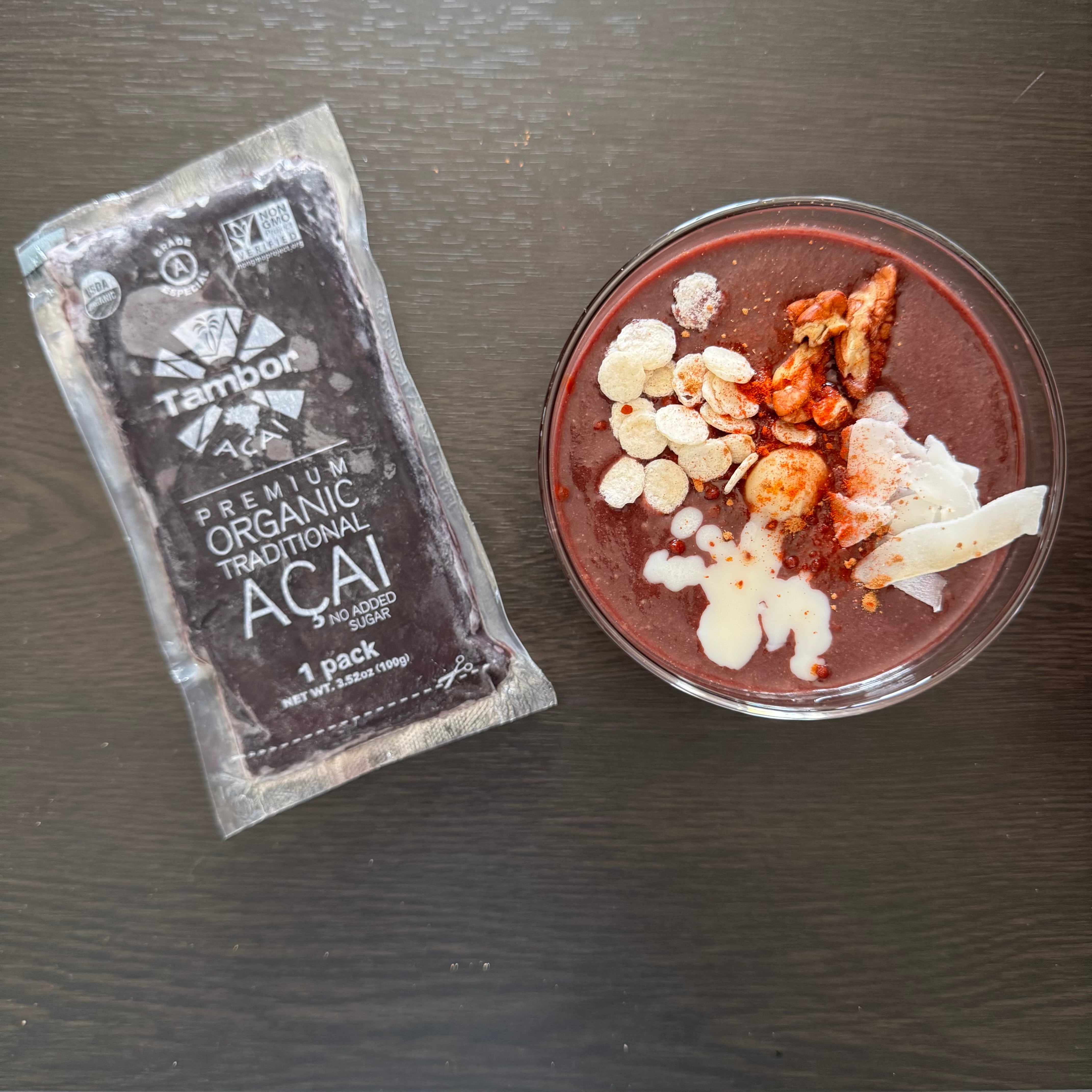 ⚠️アサイーの味は甘酸っぱいイメージがあると思います。しかし、本来アサイー自体は糖質が低く、甘くありません。そのままアサイーだけ食べても、決して美味しいとは言えませんので、予めご了承ください。皆さんが市場で食べるアサイーはほとんど果物や甘味料が入ってるので美味しいのです。