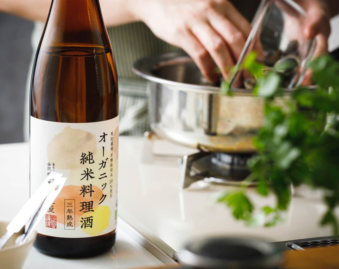 料亭や割烹では、料理酒を使わず一般的な清酒を調理に使用することが多いのはよく知られています。食塩などを添加した料理酒にはない日本酒本来の味わい、力強さが、素材そのものの風味を引き立てるからです。「オーガニック 純米料理酒」は、有機栽培米がもつたっぷりとした旨味と芳醇なコクが特長。そのまま飲んでも十分に美味しい純米酒です。熟成によってお酒のアルコールが変化し、まろやかな円熟した香味となります。素材に浸透しやすくなり、魚や肉の臭みを消すマスキング効果、素材に浸透して柔らかくする反面、煮崩れも防ぎます。味が決まりやすく、“美味しいお酒で作るから料理が美味しくなる”を実感していただけるアイテムです。