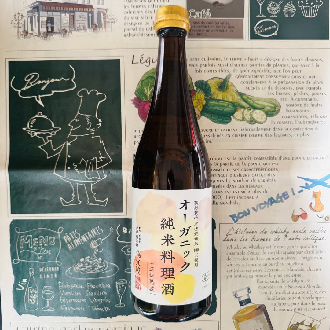 有機栽培米100%と、霊峰白山の百年水を使用。福光屋・壽蔵にて、伝統の技とともに3年間じっくり熟成。まろやかな口当たり、優しい香り、そして素材の旨味を自然に引き立てる繊細な味わいが特長です。日常の煮物、魚料理、洋風のソースまで、幅広く活躍する万能な一本。