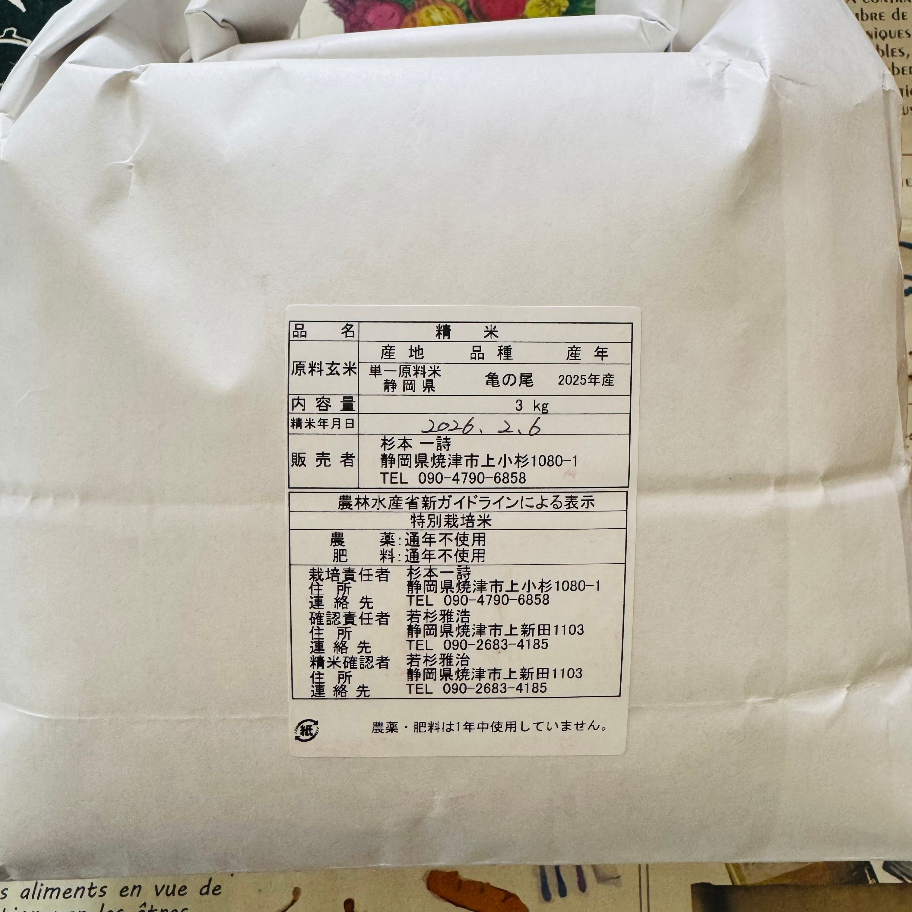 ✅静岡県産白米(亀の尾)3Kg