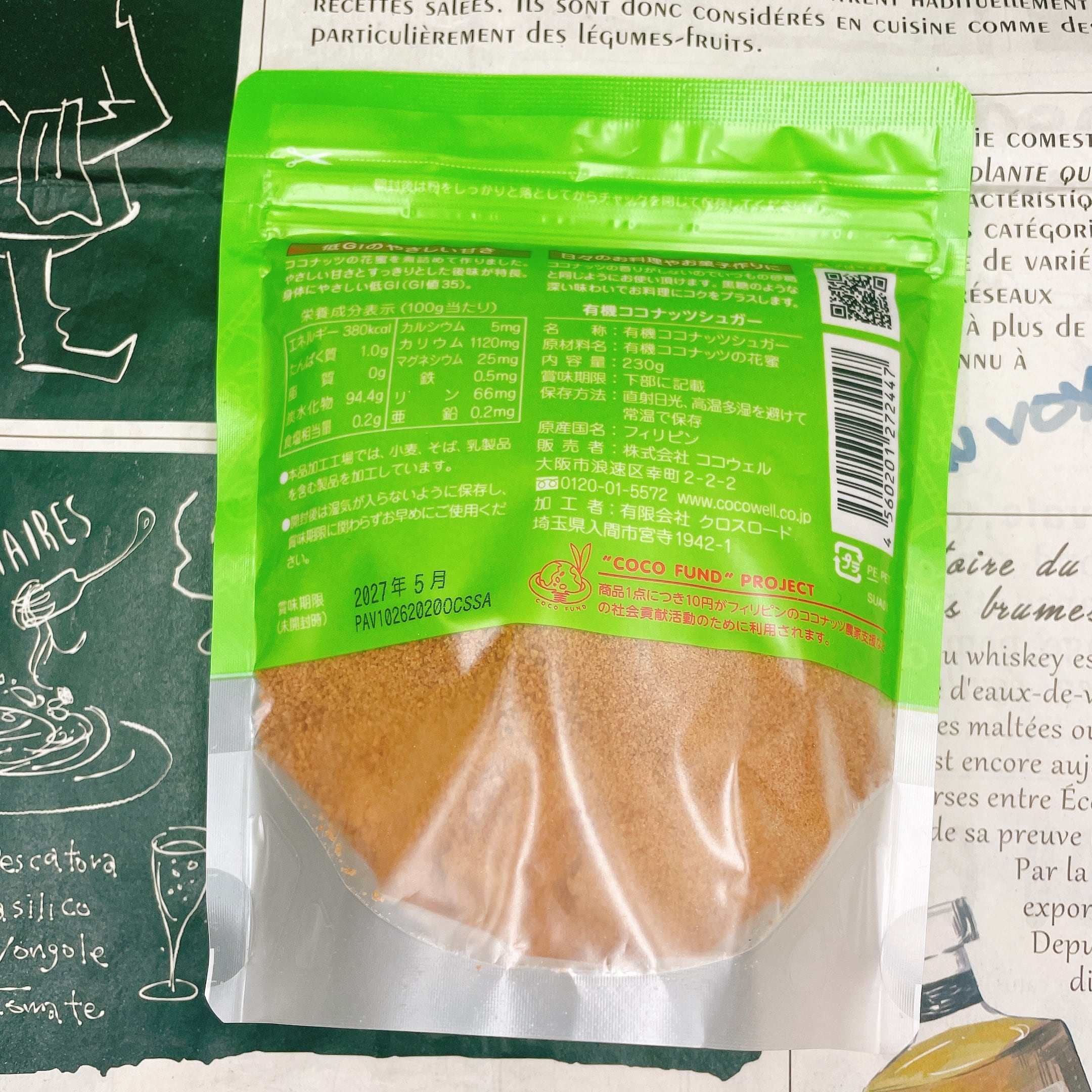 ココナッツの実ではなく、花蜜を煮詰めて作られています。そのため、ココナッツの甘い香りや味ではありません。