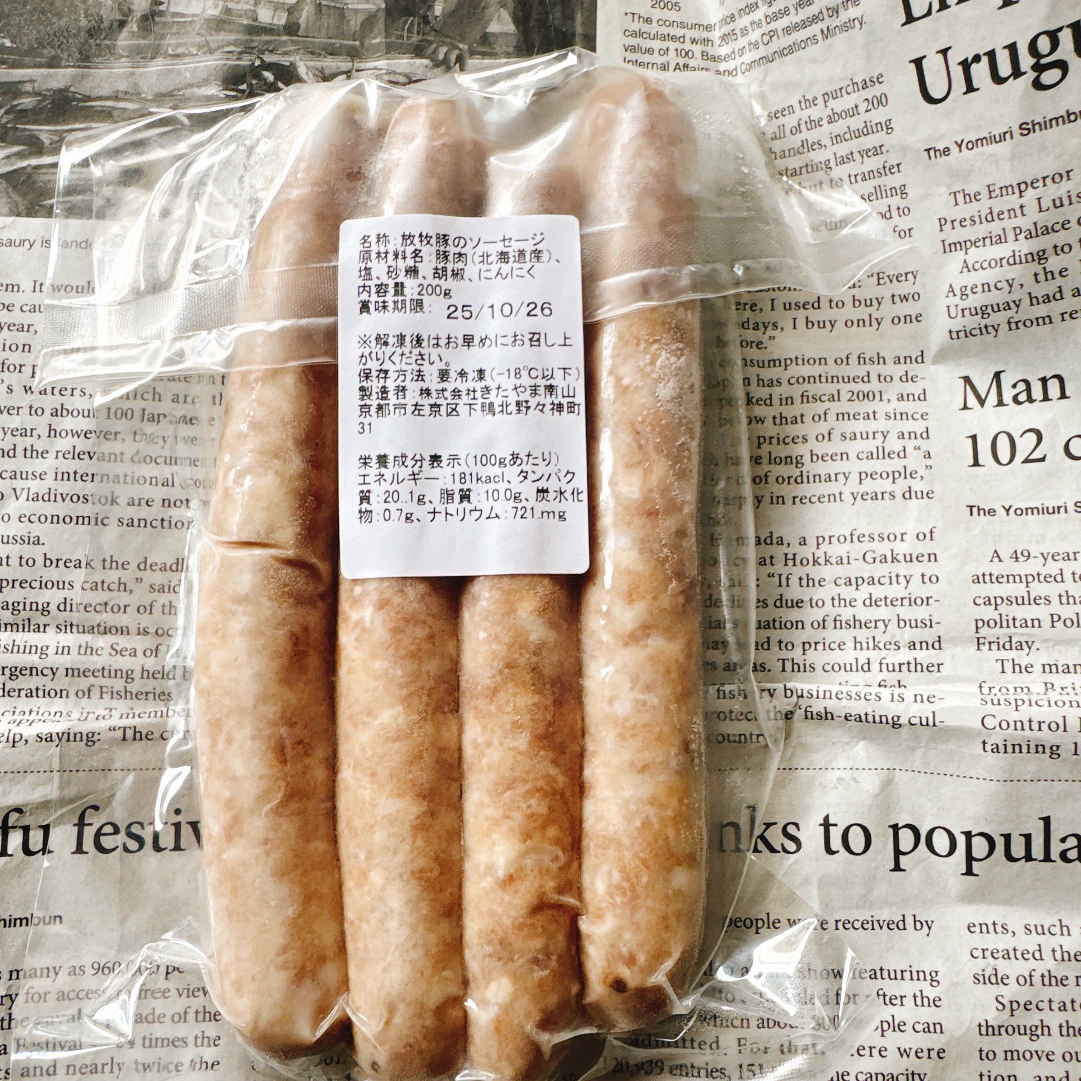 心から動物を愛している秦さんが目指した養豚は豚を放牧させ、豚が豚らしく育ち、 豚の特性を生かした畜産を実践されました。 子豚は母豚と育ち一緒に広い放牧地でのびのび育ちます。 また雑食である豚の特性を生かし人間用には出荷できないと判断された長芋、小麦、大豆、ゆり根、ジャガイモやチーズを作るときにでるホエーなどの豊かな畑作のある十勝 の副産物を豚に与えています。もちろん放牧なので土にいるミミズや泥、根っこもエサ になります。生産効率がぐっと上がる配合飼料を一切与えないため、ゆっくり時間をか けて豚を育ててられます。通常の豚が 6 ヵ月で出荷されるのに対して 12 か月以上もの 時間をかけてゆっくりと育ちます。また 1 頭 1 頭の成長スピードが違うため月齢で出荷 を決めることもありません。動物と自然に暮らす牧場を実現されています。