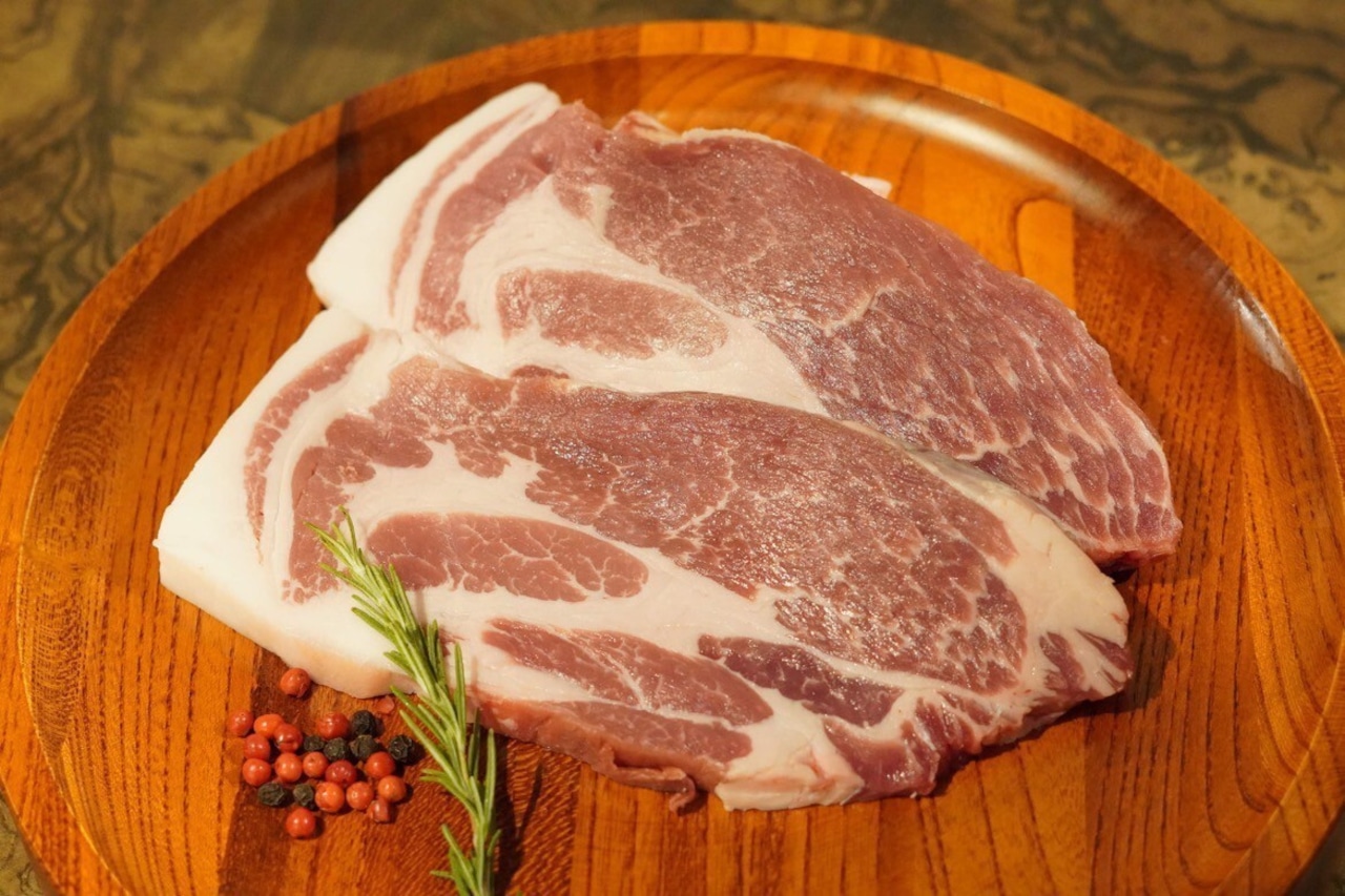 ジャガイモ、長芋、小麦、大豆、ゆり根、ホエーなど。泥、ミミズ、根っこ、青草など、肉質バークシャー(黒豚)の場合は脂が多いですがくちどけの良いさらっとした脂質が特徴的。赤身も弾力があり味が濃い ケンボローの場合黒豚に比べて皮下脂肪が薄く赤身が多くなります。 赤身は若干歯ごたえがありますがうまみが強くイノシシの様な味わいも感じられます。