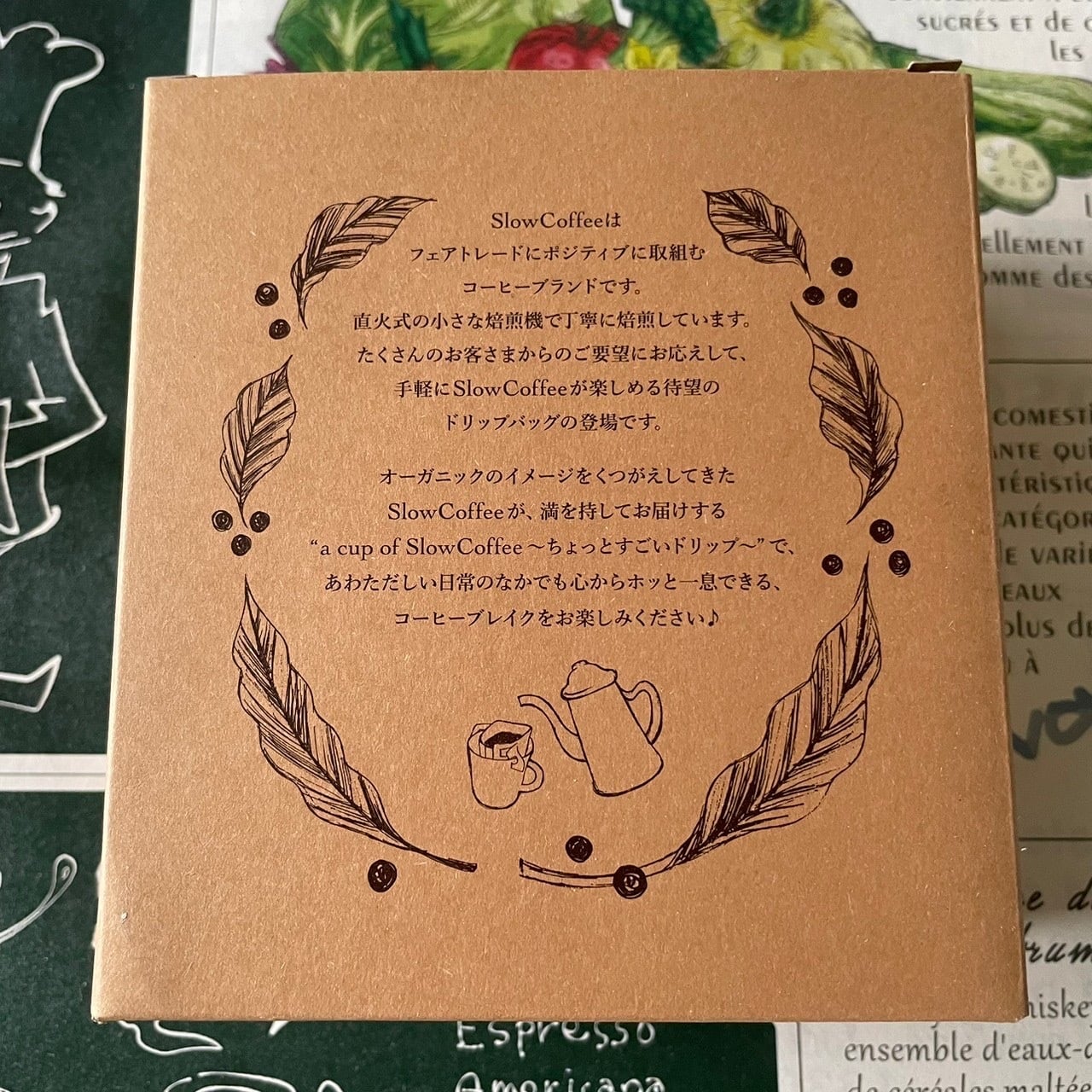 手軽にオーガニック&フェアトレードのSlowCoffeeが楽しめる【ドリップバッグ】です。 コーヒーカップの上に乗せて、お湯を注ぐだけで簡単にお飲みいただけます。