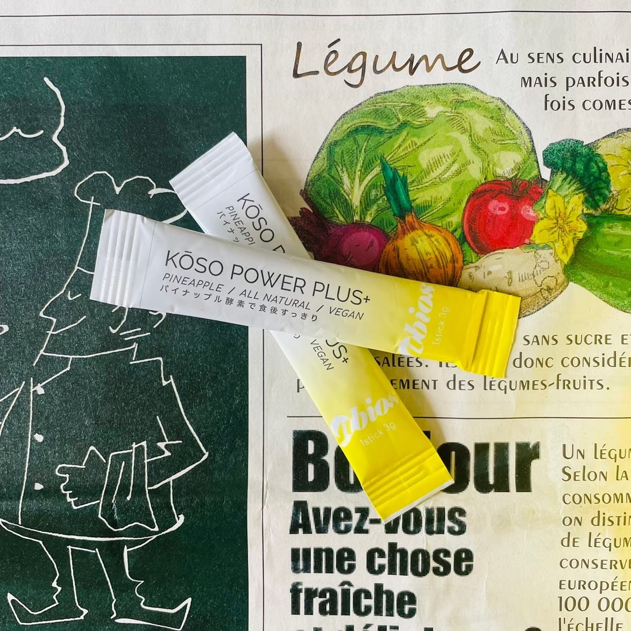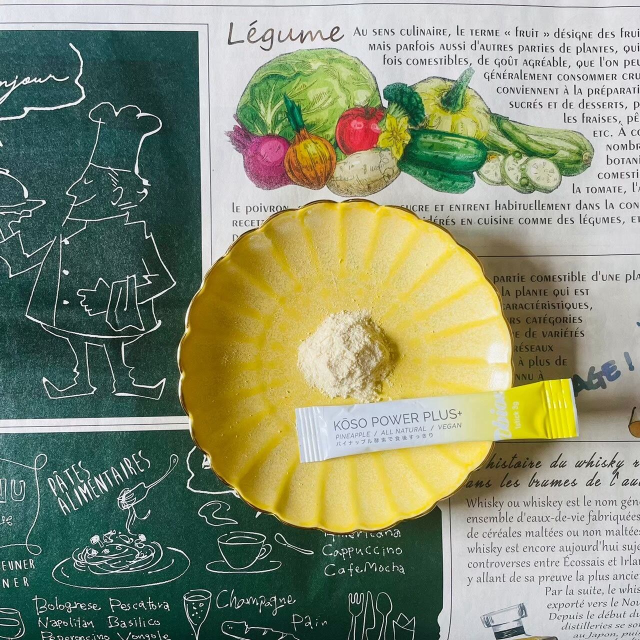 KOSO POWER PLUSは、世界中から厳選し、丁寧に育てたパイナップルを丸ごと使用。非加熱製法で、パイナップルのみに含まれる酵素「ブロメライン」をしっかり守ります。たんぱく質に必要な活きた酵素が毎日の食後ケアや栄養補給の手助けに。